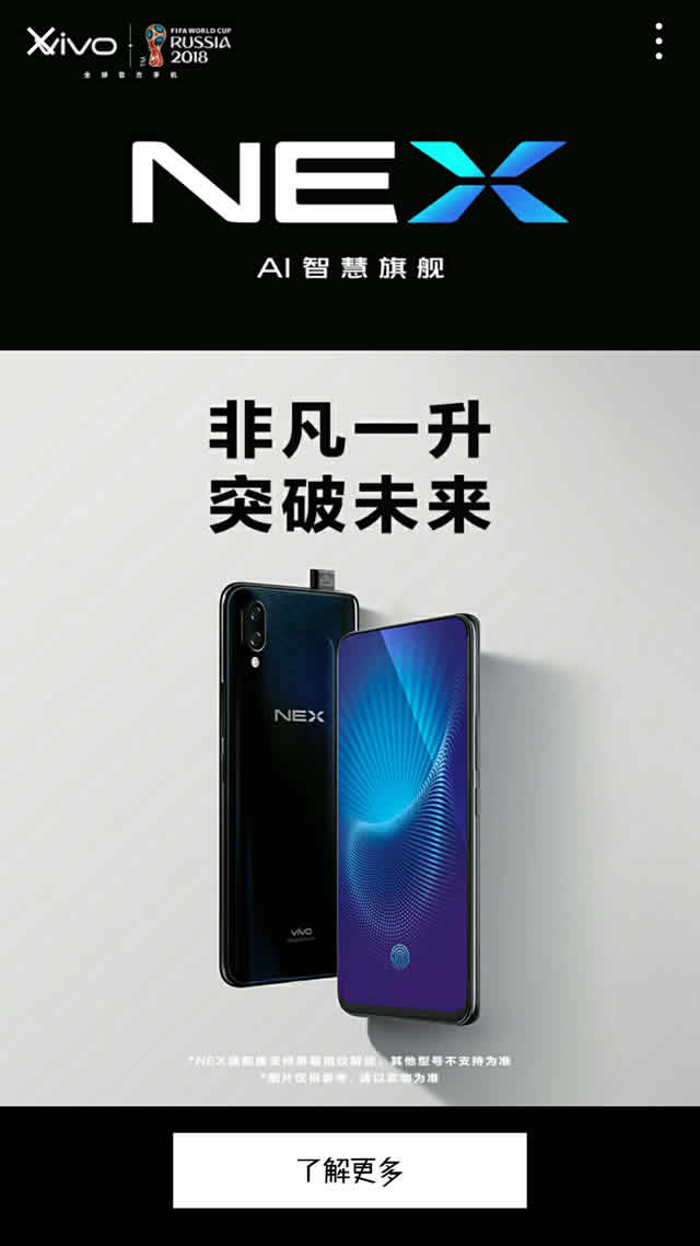 落地页的下半部分讲述了VIVO NEX手机的相关信息,包括手机的性能,以及Jovi智能语音助手功能体验等等。在快要结束的位置。VIVO还会继续和我们约定下一个4年,当然广告最重要的是要对VIVO NEX手机了解更多了,如果用户觉得还想要了解更多关于VIVO NEX手机的更多信息,可以点击【了解更多】来找寻答案。 关于在微信朋友圈广告投放关于新手机的广告,小编有这么几点建议: 1、手机和同价位的手机相比,有哪些优势。也就是给用户一个必须购买的理由; 2、和同价位的手机进行对比,突出自己的优势。和别人形成对比,突出自己! 3、最后一条就是品牌战略,也可以说就是讲情怀了,毕竟有些时候,我们卖的不一定是手机,也有可能是情怀,最好的就是在潜移默化之间能够让用户记住品牌,记住新品~