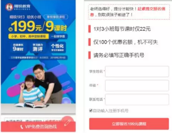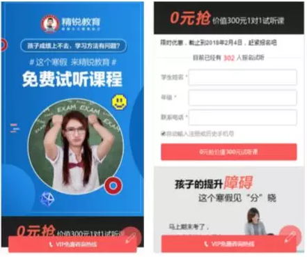 创始人“学霸张”总结自己在哈佛北大的学霸经验,创新性地将“哈佛案例教学法”融入基础教育幵提出学习力概念,遵循“以学为主、以教为辅、主劢学习、多元互劢”的学习力原则,通过个性化教学服务并结合最新科技手段,提升学生的学习力,助力成就精英未来。 当时面临即将放寒假的时间节点,精锐教育计划推出名师1对3课程和名师1对1课程,借由小升初资料领取和中高考真题解析领取作为铺垫,推出寒假课程报名。由此精锐教育定下了三个方面的推广目标。