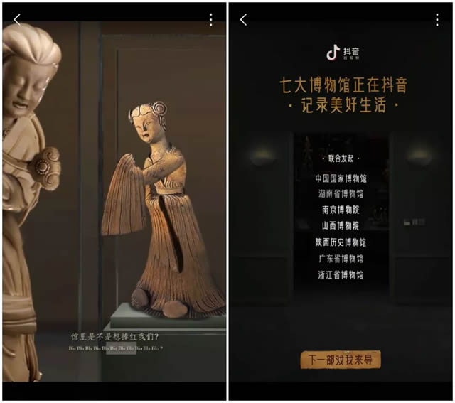 他们是怎么做到的?小编分析,该账号的许多视频都是以其签约的流量型代言人易烊千玺、郑凯、迪丽热巴为主,他们专门为代言人制作了多条符合抖音用户使用习惯的竖屏内容,并鼓励用户进行互动,因此短时间集中爆发比较容易实现,但是这种方式费用高昂,或许只有大牌能承担得起。 2、制造传播热点型 抖音的用户互动性极高,因此特别适合营销活动的传播和扩散。 最典型的例子,可以说是5月18日,中国国家博物馆与七家地方博物馆,联合抖音一起推出的“第一届文物戏精大会”H5,各大博物馆的文物集体唱歌跳舞的视频,刷爆朋友圈。