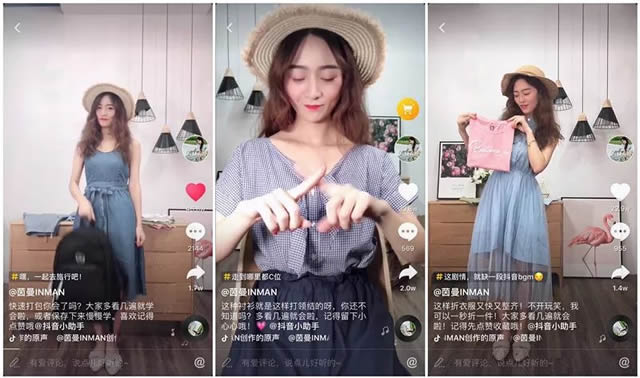据小编所知,能在短时间有如此大的增量,茵曼并非仅靠自己的力量,他们也借助了抖音专业运营商金科文化的运营经验以及对抖音推荐逻辑的一些洞察。 金科文化建议品牌方不要刻意为了播放量以及粉丝数放弃自己的品牌调性。在抖音蓝V号传播上,架构起服饰搭配师的人设:以干货分享为主基调,包括拍照技巧、衣服穿搭、衣物整理等。于此同时,在模特选择,整体拍摄风格上,依然保持了茵曼轻奢,小资慢生活的品牌基调。