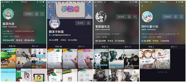凭借对抖音平台的研究,金科总结出抖音平台打造爆款的思路,陆续孵化不同内容风格的达人号,目前已实践并建立起自己的达人矩阵。脑洞光波、麒漾手帐喵、套路喵先生、阿P补番计划等号都是运营时间不足一月,且账户整体情况表现较好。