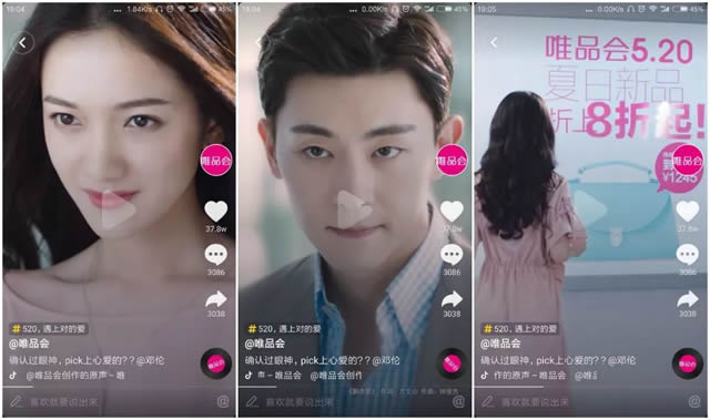 另一个脑洞比较大的案例来自唯品会,视频开始是烘托出男女主一见钟情的气氛,BGM是林俊杰的“确认过眼神,我遇见对的人”,结果吸引女主的是唯品会的广告,造成了男主自作多情的尴尬场景,达到了剧情反转的效果。这条广告获得了37.8万的点赞以及3000多的转发和评论。