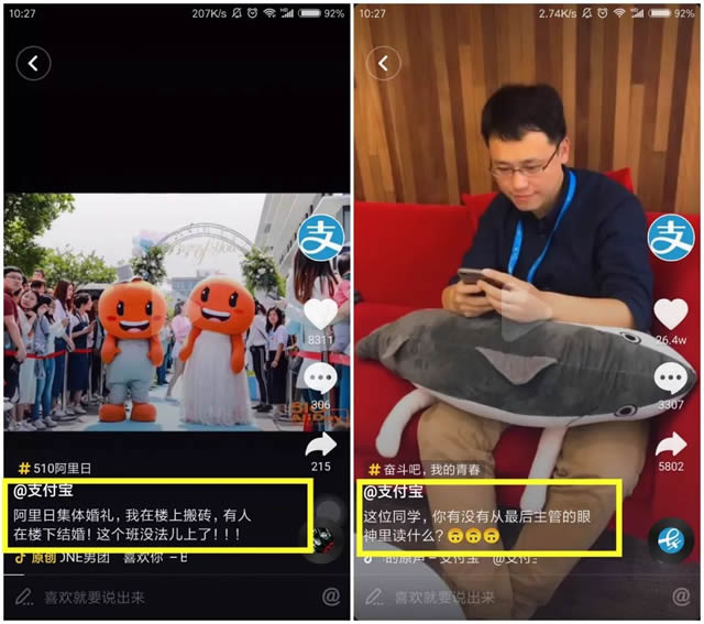 贴纸广告优势在于减少用户对于广告的抵触情绪,并激发用户互动。用户使用后会主动上传至社交媒体,进行有效的二次传播,同时用户的主动分享与主动利用,能够提升用户对品牌的好感度。 8、视频文案不容小觑 你以为在视频平台除了视频推广就没有其他形式吗?最后小编要说的大招是——视频的文案。抖音能发挥文案作用的地方有三处:标题、评论以及字幕。 标题在提高视频播放完成度和互动率上起着关键作用,抖音高点赞的视频在标题上主要有叙事型和悬念型两种。 叙事型标题通过一段完整的描述来帮助用户减少理解成本,单看标题就能获知视频的主旨。 悬念型标题通常是把话说一半留一半,调动用户好奇心。这种风格的标题可以帮助提高视频播放完成度。如果视频效果与用户期待值一致,还会提高用户的互动热情。