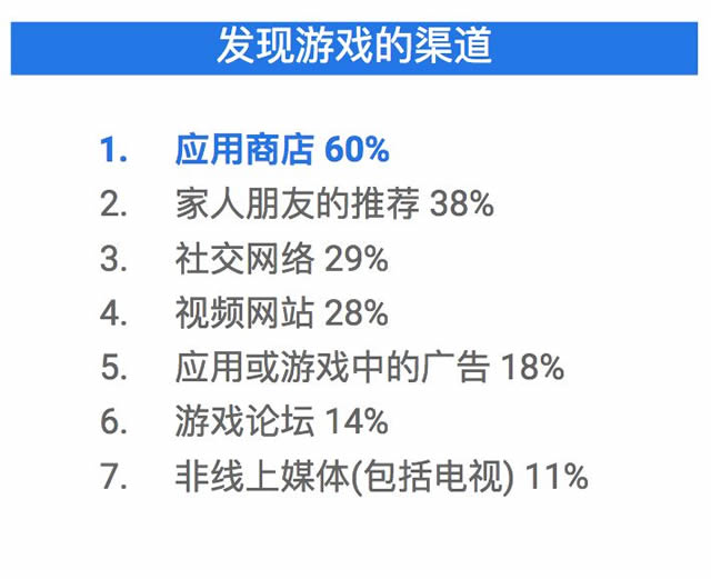2. 应用商店是获取新游戏灵感的重要途径,六成游戏玩家都会在应用商店去发现新的游戏。而且玩家会看排名、评分和推荐。所以你一定要注意自己游戏的表现。