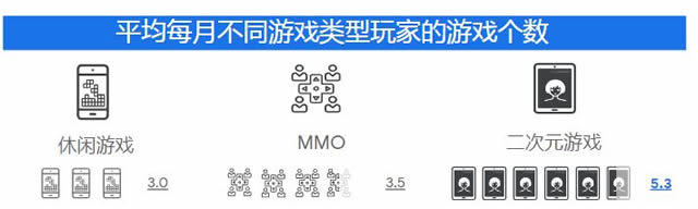 4.对于那些仍需时间考虑的MMO玩家和二次元玩家,他们更看重专业游戏评价,他们会去游戏论坛或者网站,寻求更多信息。所以,一定要维护好初期用户和KOL,注意口碑。 体验:玩家在游戏中如何玩? 找到了用户,并且说服了他们安装游戏,接下来就要让他们沉浸其中,一玩再玩。 1.每个游戏玩家平均每月会玩4款游戏,并跨越不同的游戏种类。其中,二次元玩家最“沉迷”于游戏不可自拔,平均每个月会玩5款以上的游戏。
