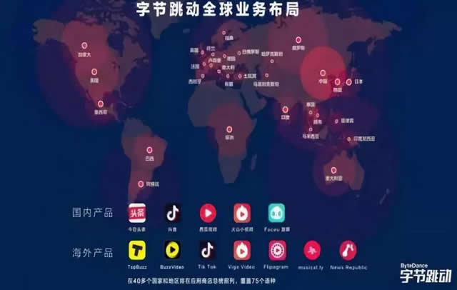 字节跳动全球业务布局图 8月7日,英国《金融时报》报道,据知情人士透露,北京字节跳动科技有限公司(Bytedance)希望明年上市,此前,字节跳动很努力在进行私募筹资,它有机会使其估值高达450亿美元,但却因为监管整治,泡汤了。 《金融时报》的记者没有采访到字节跳动方面,不过,这位记者联系到了与字节跳动有接触的投资人,该投资人称,一些寻求入股的投资者接洽了字节跳动,但后者并未积极开展融资工作。 通常,字节跳动对类似的新闻报道都予以否认,在普遍认为经济会走向悲观方向的情况下,它依旧特立独行,在巨人和壁垒之上跨界、在惩罚和隐忍中妥协自省、在中国和全世界急速狂奔。