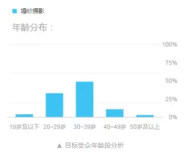 对婚纱摄影行业进行分析,可以发现目标人群集中在20-39岁。他/她们是网络重度且娴熟的使用者,生活信息习惯在网上获取,通常需求也通过网络得到满足。因此朋友圈广告完美的契合了这一点。