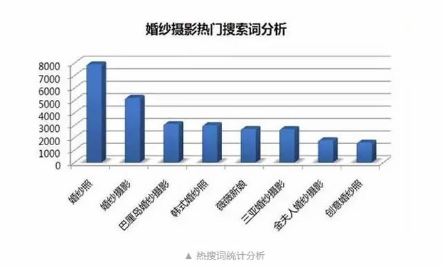 地域分析的数据显示,对婚纱摄影行业具有搜索行为的客户群体主要集中在北上广一线大城市以及江苏、浙江等消费力较高的地区。 综上可知,行业受众人群年龄集中分布在20-39岁,且在北上广一线城市以及江苏、浙江、四川等地居多,因此可以选择年轻人群集中的渠道进行推广,如广点通、朋友圈广告等。 针对广告设置投放参数时,可以参考以上年龄段、地域的目标人群偏爱的网站或者行业来进行选择性推广;不同年龄段人群收入不同,我们也可以参考年龄段策划该年龄段人群对于产品的关注点。