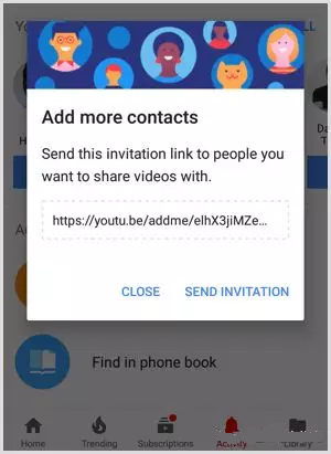 通过电话簿查找,你可以搜索手机上的联系人,查看是否有人在使用YouTube,以便你可以邀请他们。发送邀请链接将生成一个自定义链接,你可深圳品牌公关以使用该链接添加新的联系人。