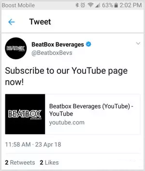 当你分享邀请链接时,通过安装了YouTube应用的移动设备点击此链接的用户将被添加到你的联系人列表中,以便你可以开始与他们分享你的产品或其他视频。 例如,你可以在Twitter上分享你的邀请链接。