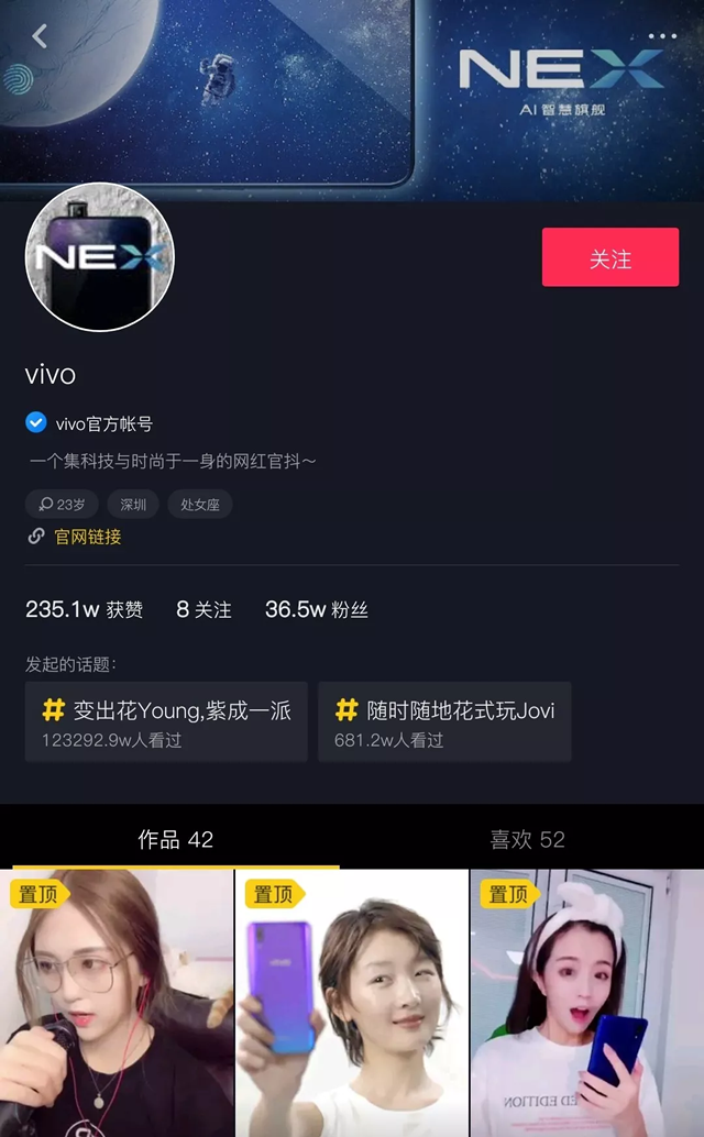 以Vivo的抖音官方账号为例,除了代言人的广告视频以及网红合作推广,Vivo还推出“技术干货”,类似《自带滤镜拍出文艺范儿》、《简易道具拍时尚大片》等都收获了大量点赞。 “流量推广产品,技术带动体验”的企业短视频营销思路,从售前售后两个阶段紧贴用户的心理,保证短视频基础功能的同时,赋予它服务性质。 鉴于Vivo在短视频平台成功的案例,我们不难发现,有硬广投放的企业因本身会玩视频从而占据着得天独厚的优势,他们懂得使用正确的逻辑去推广产品和品牌。 另一方面,粉丝通常会在评论、私信里提出需求并“教育”品牌,因此企业通过短视频与用户迅速产生关联。 流量旋涡的年轻平台 很多企业现如今都面对一个类似的问题——品牌失能,淡化甚至失去与用户的沟通,尤其是与新一代90后、00后的联系。数据显示,近6成的抖音用户分布在30岁以下,而短视频作为消费年轻化的娱乐载体正是解决这一问题的核心。