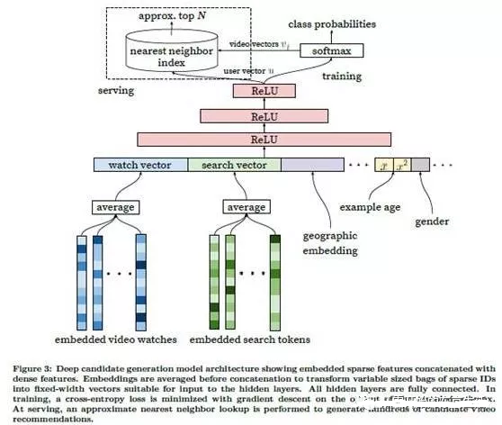 得刚入行的时候正巧是全中国视频行业第一部付费电影《让子弹飞》在土豆上线,同事们鏖战两个月,完成了这一步。作为第一个敢吃螃蟹的人,这个第一口的味道并不美丽,最终铩羽而归,一方面是因为《让子弹飞》高清片源的提前泄露导致票房惨淡,还有就是彼时的中国互联网视频用户对于陌生的付费看视频的行为是观望的心态,对于20元只能在网络上看一个电影且48小时后无效的设定的不解。 如今买会员的用户已经占多数了,成为一项有效的营收。但是对于广告主来说可能又是另一种损失,广告内容无法到达有效人群,拉出非会员的数据素描,更多的广告偏向了游戏类。甚至前两年还出现了个乌龙,在严肃的政治新闻中插广告是后宫养成类游戏。 两厢一对比,对待广告的不同态度和理念,形成了两个网站广告模式的具象发展。两种模式都有效,毕竟钱最终是被掏出来了,不管哪种方式。 推荐 Youtube最引以为傲的推荐算法还是比较神奇的,在youtube你感受不到人工推荐的痕迹,因为语言太多,全球各色人种竟然神奇的在这个网站共享,真正做到了千人千面。 当然最终达成这样的原因可能也是youtube内容太多语言太多,根本无法有效分类,那么既然这样不如放弃分类,从树状结构变化扁平结构,更多的去让用户自己通过行为和其中的一部分内容产生强关联。 然而youtube的算法是它最重要的资产,外界描述几乎没有,内部资料又无法得知,我在网络上找到的最全的论文也只有2016年发表的《 Deep Neural Networks for YouTube Recommendations》,相信到了今年这个结构又会有很大的变化。YouTube的工程师将其描述为“现存规模最大和最复杂的工业推荐系统”之一。并且因为这个不透明的算法,让youtube一度陷入通过算法诱导政治,推荐虐童视频等等负面新闻。足见其强大算法给人带来的恐慌。讲真,这个模型我也并没有看懂。