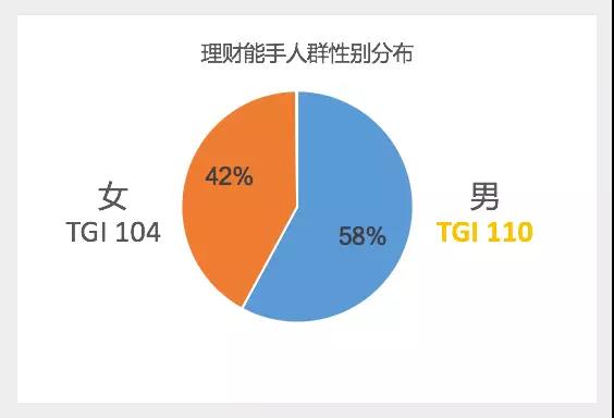 我们会从以下5个方面来深入剖析两类人群的特征并给出相对应的营销洞察建议。 a.用户属性特征 b.金钱消费观 c.投资理财偏好 d.行为兴趣特征 e.营销洞察和建议 投资型 理财能手人群 1.用户属性特征 a.高学历核心重点城市的用户占比突出,且男性用户关注比例更高 理财能手人群中,相较女性,更多的男性表现出对金融信息的关注和兴趣。