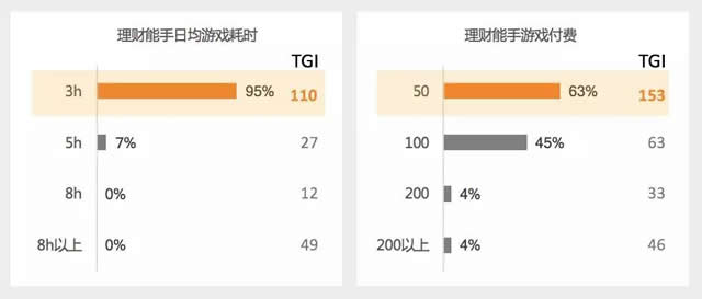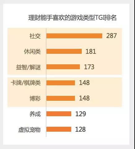 2.不沉迷游戏,但爱玩小游戏和棋牌,游戏只是和朋友互动、打发时间的方式 总体来看,理财能手人群并不是游戏重度用户,他们在游戏上花的时间少,付费意愿也较低。