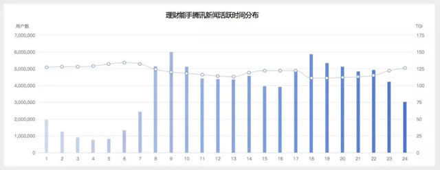 2.理财能手们属于腾讯新闻的高活跃用户,尤其是早上和晚上 理财能手用户在腾讯新闻的各个时间段占比情况基本都高于大盘,活跃度非常高。 高活跃时段为7:00-10:00以及18:00-23:00。