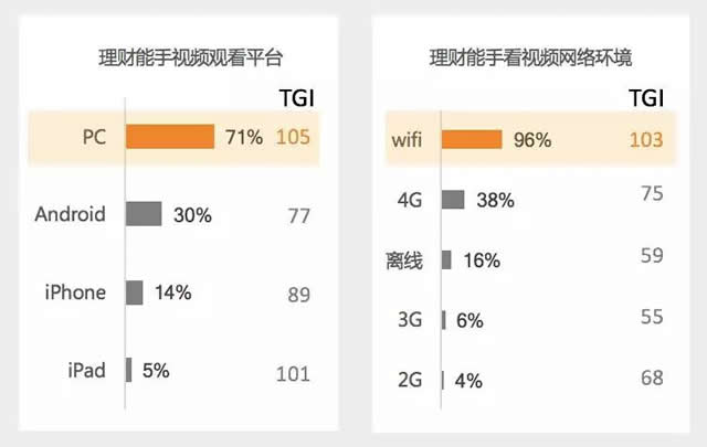 3.习惯PC上看视频,换个方式看电视 与理财新手不同的是,理财能手人群更习惯于在WiFi环境下用PC观看视频。