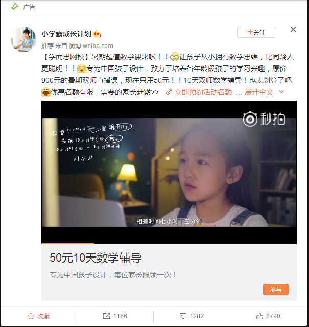 暑期快到了,此刻各大教育机构的推广活动也在如火如荼的进行着,如何将品牌以及暑期培训内容推广给广大用户打响暑期战役是众多广告主需要考虑的问题。这里小编想说选择平台很重要!小编给大家推荐微博粉丝通平台,以下给您分析原因。