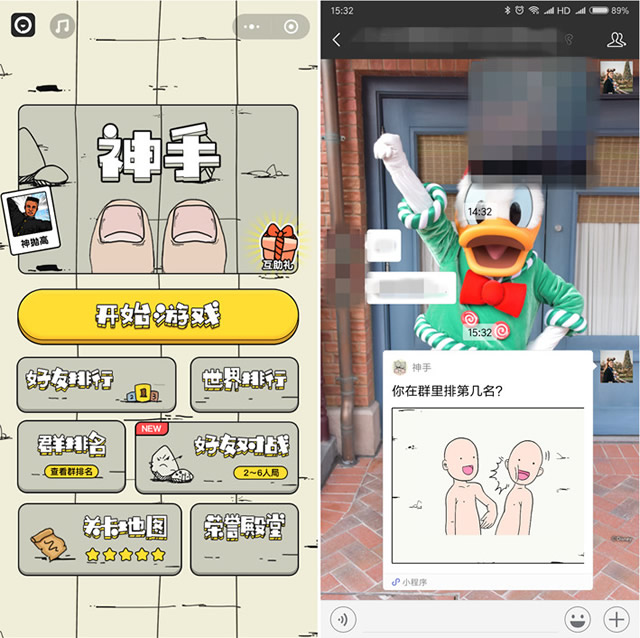 3. 炫耀 炫耀是非常底层的需求,开发者可以提示用户转发小游戏到微信群,查看群排名。既可以满足用户炫耀的需求,又可以激发其他群友挑战的兴趣。 除了群排名,还可以在用户获得最高分或是拿到新皮肤后,提醒用户分享到群聊或是生成图片发到朋友圈。文案和图片都可以浮夸一些,增强展示性。