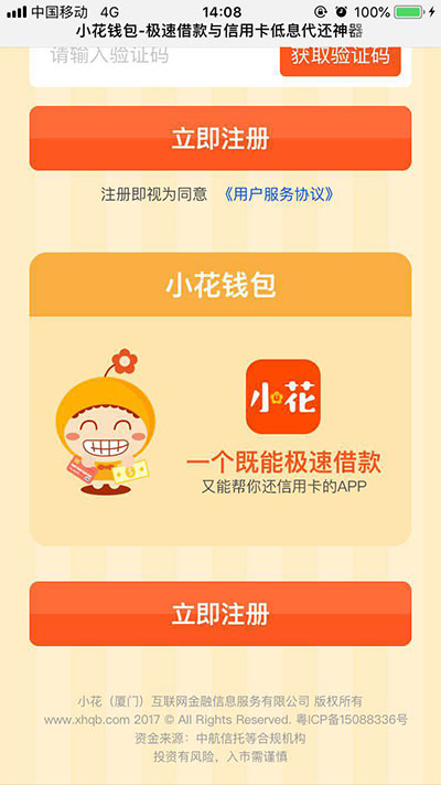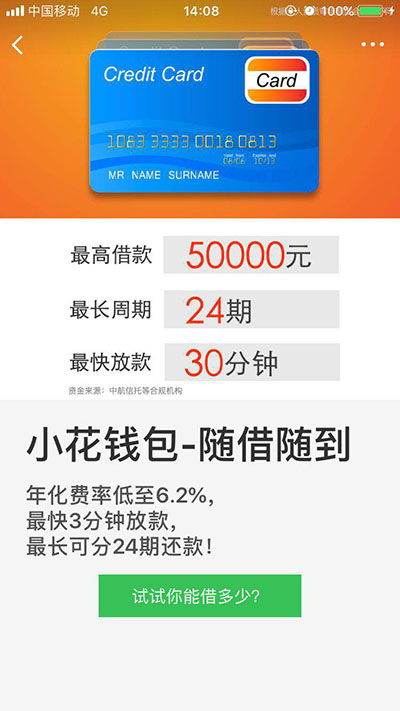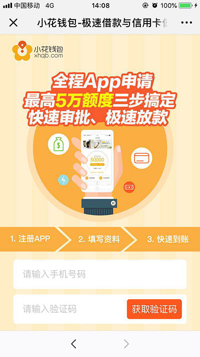 很多落地页跳出率很高,其中大部分原因是要求用户预留的信息过多。如果这些内容过多会让用户产生反感,提高警惕,没有信任感。一般留下姓名及手机号码即可。 微信朋友圈广告支持小额贷款应用APP推广,你还等什么?赶紧联系我们吧!