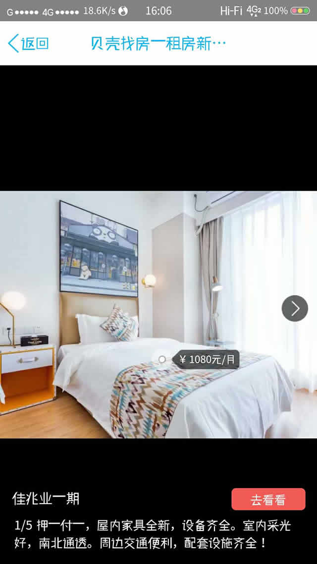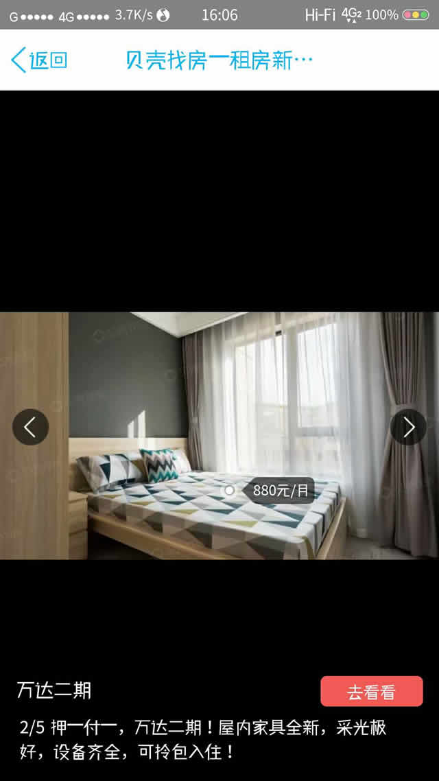 广告文案是“同事住的比我好,房租比我少一半,竟是因为他”,小编觉得整个广告文案里,最重要的就是房租少一半,对于一线城市的青年来说,租房不易,省钱更不易。 我们通过广告可以看到整个房间装修以及地理位置还是不错的。手动点击“去看看”以后,会看到更多的精美房源以及价格。