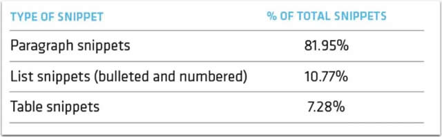 According to Getstat, the most popular featured snippet is "paragraph" type: 据Getstat称,最受欢迎的精选摘要是“段落”类型的: