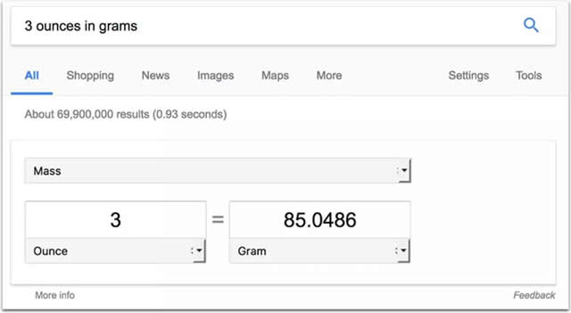 是精选摘要还是答案框? 由于我们正在处理一个全新的现象,因此术语并没有最终确定。 很多人(包括我自己)倾向于将精选摘要称为“答案框”,显然是因为框中出现了答案。 虽然这个术语没有什么不对,但它造成了一定的混淆,因为Google通常在不提供源链接的情况下会给出“快速回答”(定义,估计等):