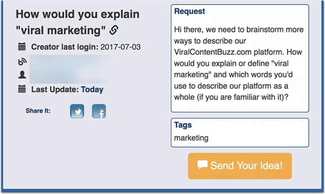 在非受众群体中随机抽取人员询问他们对特定话题的问题,以及他们的担忧。 跳出问题本身的局限后,总是可以带来一种全新的视角。 MyBlogU就是一个很好的实践。 只需在“头脑风暴”栏目发布一个新项目,并要求成员分享自己的想法。 借用种子关键词工具:向你的合作伙伴和粉丝请教 种子关键字是一个简单的工具,可以让你发现相关的关键字,可以有效的帮助你的合作伙伴和粉丝。只要简单地创建一个搜索场景,在社交媒体上分享,并要求你的追随者输入他们的答案来解释该关键词。 尽量不要在主导搜索场景。 避免引导用户使用您认为应该使用的搜索词。 这是个场景的案例: