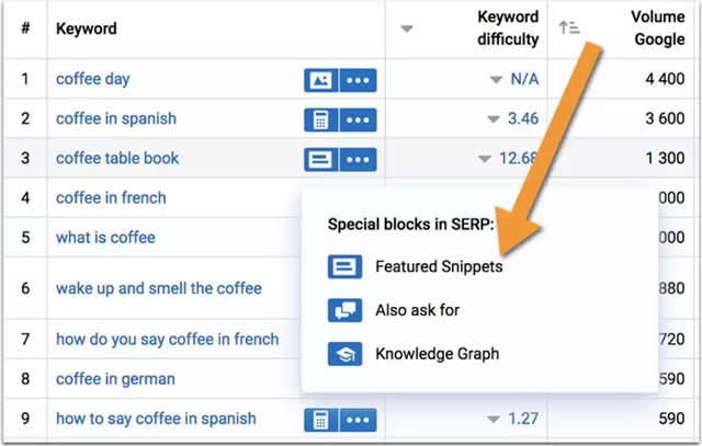 以下类型的搜索查询通常没有答案框: 图片和视频 当地频道 购物 综上所述: 假如你有排名前10的页面,将有机会获得精选。而且,精选最大的作用在于提升你的总体排名(特别是有助于长尾信息查询的提升,这是你收益的下限)。 如果你专攻的领域是DIY,健康或金融,你将有更高的机会获得精选。 争取各种获得精选的机会 从效果好的已有关键字开始研究 多项研究表明,大部分精选摘要都是由长尾关键字触发的。 实际上,输入到搜索框中的字数越多,出现精选摘要的概率就越高。 从研究关键字开始是个不错的选择。 在这个案例研究中,博主为我们提供关键词细致的研究策略,还有另一个案例列举了专家建议的主要关键词研究工具。 在进行关键字研究时,需要注意: 从问题类型的搜索查询开始(那些包含问题单词的搜索查询,如“what”,“why”,“how”等),因为这些是最容易识别的,但并不限于这些... 从信息性的意图出发,而不只是针对问题。虽然精选摘要旨在立即回答用户的问题,但问题类型查询并不是触发这些特色结果的唯一类型。从上述Ahrefs的研究看来,绝大多数触发功能片段的关键词都是长尾查询,没有疑问词。 建议你使用能立即显示查询是否触发摘要结果的关键字研究工具,它非常有效。 我使用Serpstat这个软件进行关键字研究,因为它将关键字研究和精选摘要研究结合起来,并让我看到哪些关键字会触发答案框: