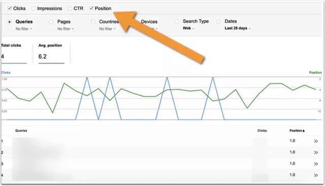 清楚自己搜索查询的排名位置 清楚你最好的搜索结果是排在哪个位置。 这些将是您优化回答框后最容易获得成果的部分(更多内容请参见下文)。 Google搜索界面显示搜索关键词的点击数据。点击“搜索流量”,然后点击“搜索分析”,就可以找到该数据。 通过该报告您就可以查看哪些搜索查询最佳表现了。