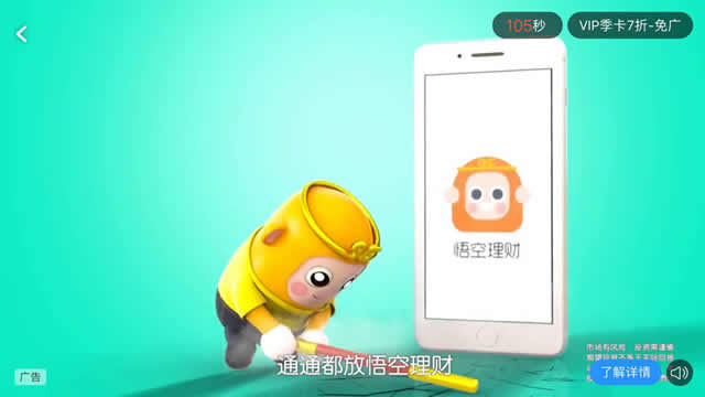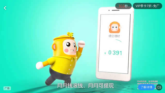 现在很多人会选择给自己做一个理财计划,但是选择哪个平台效果好,并且哪个平台可信度高是很多人考虑的问题,因此各大理财广告主网络推广的时候费尽了心思。 刚刚小编在优酷视频广告看到了悟空理财的广告。可以说悟空理财的这个广告在很大程度上可以提升用户的信任值,我们来分析一下。 悟空理财选择了优酷广告的黄金位置推广产品,用视频呈现的方式,将悟空理财的功能全部展现出来,如月月钱滚钱,月月可提现、闲钱理财等,悟空理解以播放页广告的优势向用户展现了悟空理财是可信赖很实用的产品。