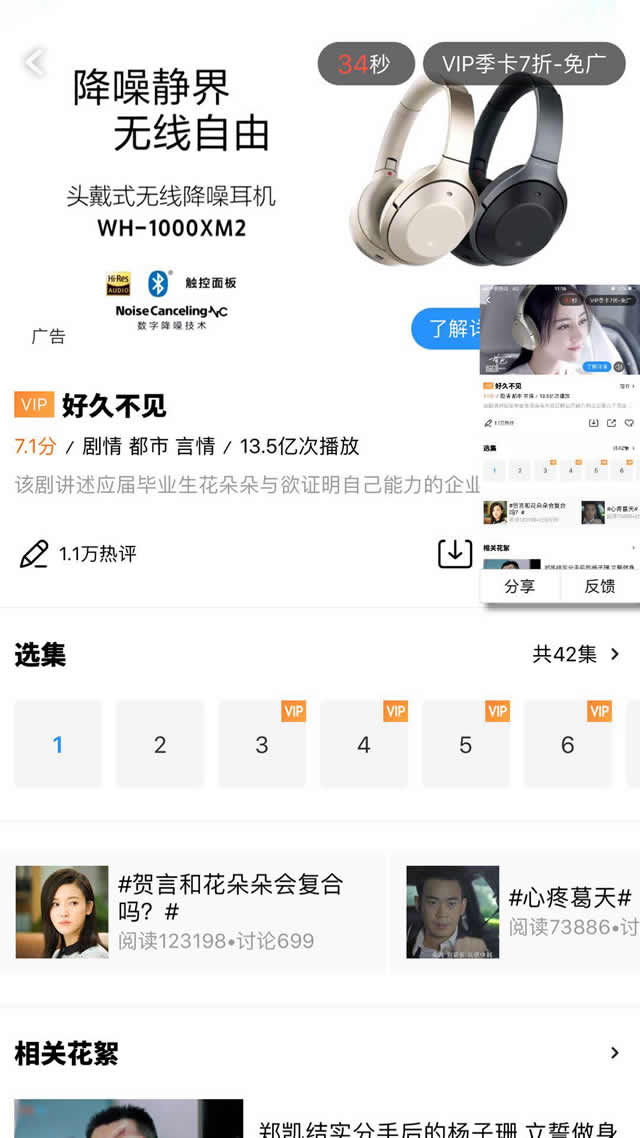 近年来头戴式耳机越来越受欢迎,一方面是因为入耳式耳机不舒服,头戴式耳机隔音效果好、音质好,另一方面也是因为头戴式耳机更加有“文艺范”,比较“帅”,因此受到很多人欢迎。 而由于年轻人的购物平台多属于网络平台,以及年中618即将到来,因此很多商家开始选择在网络平台上推广自己的产品。 小编也是在刚刚在优酷看到的索尼头戴式耳机广告,整个广告浏览完之后,小编表示真的很喜欢这款耳机啊,不仅时尚大气,性能也很好。 下面我们来分析一下,索尼耳机618这次广告有什么值得借鉴的地方。 索尼这次618广告以明星代言以及视频的方式在优酷的视频播放页中展现了产品的特征以及使用功能,给我们优雅的呈现了无线自由以及降噪的功能,并且视频更形象地将产品的简约大气的特点体现了出来,对于消费者来说有很大的吸引力。