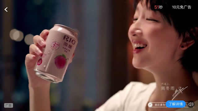 下面我们来分析一下,RIO这些广告在优酷上投放的优点。 RIO选的是视频播放前页广告,移动全屏的方式给了消费者极致的观看体验,不仅可以了解到产品信息,也可以沉浸式体验广告的“味道”,提升消费者的好感度。