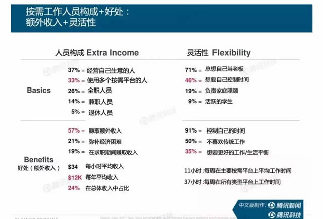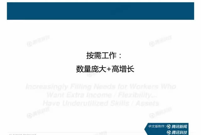 7、自由职业者占比增长迅速 报告分析了新技术对职业分工的影响,认为技术让人更容易找到自由职业工作,同时,在求职者一端,找工作时,除了薪资,“灵活性”也越来越成为权重更大的考虑因素。 因此,在过去一年里,自由职业者的增速比总劳动力增速快3倍;同时按需工作的需求数量庞大、增长迅速。