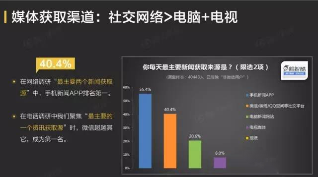 微信朋友圈广告是基于微信公众号生态体系,以类似朋友的原创内容形式在用户朋友圈进行展示的原生广告。当前已开放23个一级行业类目,其中游戏类为第19类一级行业。那么我们如何考虑手游广告要不要在朋友圈投放呢?我们先看看那些手游可以在微信投放广告: 可以投放的手游主要包含:角色扮演、策略、体育、棋牌、音乐、模拟经营、休闲、益智、养成、格斗、冒险、卡牌、竞速类游戏。如:刺激战场、天天酷跑、东方不败等游戏。 目前,基本上,只要是合法的手游现在都是可以投微信朋友圈广告的,再者我们谈谈微信朋友圈的一些数据分享: 说到这里我们先来了解下腾讯发布的《微信影响力报告2016》里头几个有价值和有趣的数据,这有助于公司去决策微信广告要不要投,怎么投。 目前最有影响力的媒体获取渠道是什么?微信的媒体影响力有多大? 根据企鹅智酷的调研结果,最主要的两个新闻的获取源,手机新闻APP排名第一占55.4%,微信/微博/QQ空间,紧随其后占44.4%。而如果调研的是最重要的一个新闻获取平台,微信则是第一名。