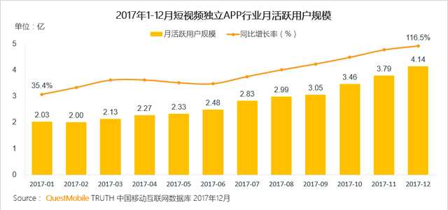 2017年,以“定义短视频”为口号的金秒奖火了。发展一年来,金秒奖达到了全民共创的火热程度,创作者已破万。一方面是因为它以记录生活为基础,与用户热爱分享的行为相一致。另一方面离不开背后平台的支持,今日头条和西瓜视频凝聚了上亿的短视频用户,为该奖项提供了广泛的用户基础。 从金秒奖的参与作品及获奖情况来看,短视频已经趋于常态化发展,全民共创短视频也进一步推动了行业升级。 1、短视频,记录生活的优选工具 经过2017年一整年的发展与累积,金秒奖已有超过10000个短视频创作者与机构参与评选,参赛视频总数达137,087 条,累计总播放量超过58亿,已成长为国内短视频行业代表性奖项。 如此庞大的参赛规模,正好反映了短视频用户的规模,根据《2017年中国移动互联网年度报告》可以得知,2017年短视频用户规模暴增到4.1亿,其增速强势领跑移动视频行业,成为主流内容形态。