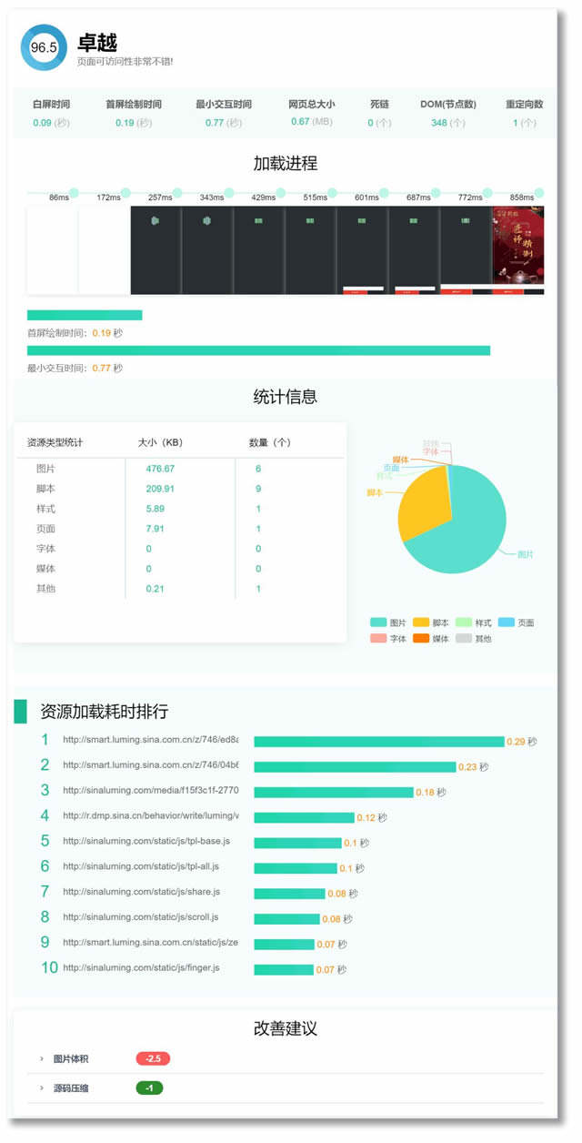想要知道哪个页面资源类型是耽误页面加载速度的“罪魁祸首&rdq新年营销uo;?排行榜上一扫便知~ 温馨提示:小主们可复制排行榜上的链接,在浏览器中查看具体内容哦~如此全方位、多角度的统计分析,小主们感觉怎么样? emmm......有点复杂...... 各项专业的数据解析之后,咳咳咳,接下来就是小主们最为关注的模块发软文推广平台啦~ 03、改善建议