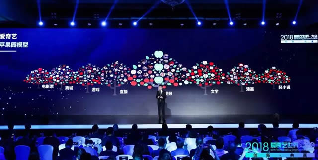 5月17日,2018爱奇艺世界·大会在北京中国大饭店盛大开幕。爱奇艺创始人、CEO官龚宇发表“科技创新助力构建共赢生态”主题演讲,介绍了爱奇艺发展中生态体系的变化,发布和强调了“三大计划”和“八小计划”,不仅在通过跨平台跟百度、京东、大地院线捆绑合作,而且在网剧、网文、新团队、新导演众多板块给予了创作者大力扶持,并通过AI(人工智能),做更懂内容、更懂用户、更懂合作伙伴的互联网娱乐平台。 从“苹果树”生态到“苹果园”体系,“理性科技+感性创意”是爱奇艺最大的价值所在 几年前,龚宇提出了爱奇艺“大苹果树”的生态模型,“树干”就是IT技术平台支撑,上面有很多“苹果”,每个“苹果”代表一种业务类型,有电影业务、综艺节目、网络大电影、网络剧、动漫、小说、漫画……现在业务规模太大,“苹果树”已经变成了“苹果园”。 在这些“苹果树”中,视频依然占据主体位置,以视频为依托,爱奇艺搭建一个包括商城、直播、文学、漫画、轻小说等在内的“苹果园”,打造一个紧密、协同的娱乐生态体系。 从“植树”到“造林”,龚宇表示,爱奇艺的DNA是一个双螺旋结构,一个是科技,一个是娱乐创意,总结成一个词就是——理性科技+感性创意,两者完美地结合是爱奇艺是最大的价值所在。 爱奇艺:三大计划+八小计划,跨平台合作,全板块扶持! 在爱奇艺世界·大会上,龚宇还公布了三大计划:百爱计划、京爱计划、大爱计划。