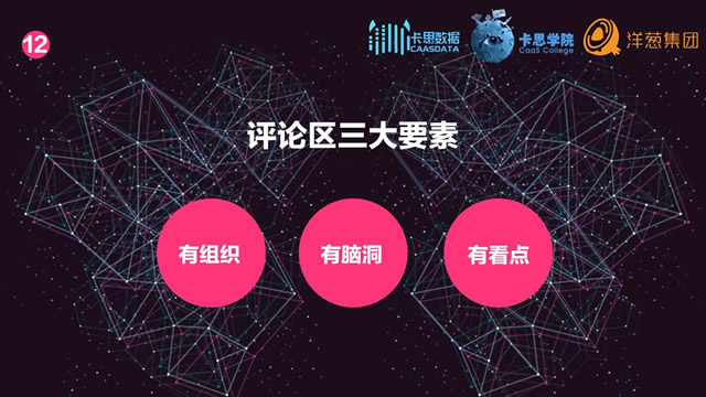 评论区三要素:有组织、有脑洞、有看点 抖音运营的核心是评论区,评论区要做一定的引导,评论区对抖音很重要,失去评论区就失去了乐趣,要做一些有意义的开头可能就带来了一系列的连锁反应,拿出做内容的心态做评论。比如代古拉K的评论中,有人说看到你的笑容我这一天的烦恼都不见了,就可能会有人说我也是我也是,还有小哥哥说,看到笑容感觉恋爱了,都会引起一系列的连锁反应。评论也是内容的一部分,让观众感觉有意思,要有意义的回复。代古拉K回复私信评论的概率是非常高的,是把粉丝当成朋友发自内心回一下,多一点真诚,少一点套路。 有组织,最好是形成自发组织,当然在出苗阶段,你的号要有一些数据表现,你可以组织一些评论,要有脑洞,大家都是有想法的一些人,你的梗要脑洞大开,以玩的心态来评论可能会更好。评论区有看点有脑洞有泪点都是比较重要的。 不同的平台运营的重心是不太一样的,以上是抖音的运营方法,但其中有一些基础的方法论也适用于其他平台的,比如用户时长和吸引用户增长这个是不变的。对不同平台要剖析不同的用户特质,根据平台的侧重去运营。 没有必要去花许多的时间来和平台取得更好的私交,你能够为平台输出更好的内容产品的话,我相信任何平台都是欢迎你的,把重心放在打磨内容和打磨运营技巧上面。比如在运营技巧上面对于每个平台的规则是否熟练,你都并不一定能够理解的那么深入,如果深入,那你每个平台的内容方法论都是不一样的。 洋葱是根据平台来运营的,每个平台的运营人员都有可能是这个平台的深度用户。如果公司比较大,你可以根据每个平台去配置不同特质的人员,这样在做数据运营的时候结果会更好。 我们洋葱的运营心得都愿意无偿地传播出来,但是必须强调一点,我们的自身的内容方法论、运营方法论、IP孵化机制等等都是在不断迭代及修正的。我们不敢保证说的都是对的,我们只是分享,只是做到一个抛砖引玉的作用,我们希望能够通过我们的分享让我们的内容生态、让我们做短视频内容的同行,让所有的小伙伴有一个感触。只要你能有一个感触,或者你觉得我今天说的这一个小时里面有一句话能是有意义的就好。 洋葱在这条道路上也是踩过很多很多的雷,不用认为洋葱的方法就一定有效。创作者一定要根据自己的特质,取其精华去其糟粕,只需找对你有价值的点去应用。