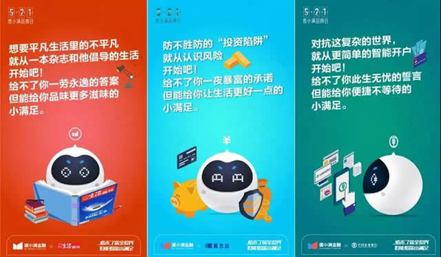 金融品牌应有的营销姿态: 不画饼不说情话 基于品牌理念给予承诺 “给不了你全世界,但能给你小满足”这是度小满今年521节点营销的主题。从主题便能管窥豹,看似像情话,但并没有局限于情侣之间,更并没有虚无缥缈的甜腻感,而是一句实打实的承诺。 作为互联网时代下以技术著称的金融品牌,评判金融服务是否到位,早已不该局限于利益功能层面,而是要看金融品牌能否在感性层面给予用户人生更多的可能性。而度小满强调的,正是这一层面的人文关怀。 “度小满”这一名称,取意“源自百度,小得盈满,前行不止”。“度”是延承百度技术基因,“小满”是一个节气,更是一种小得盈满、恰到好处的人生状态。这也是度小满金融想要与用户分享的生活态度。而度小满越过5月20日,选择5月21日也正是出于对“小满”背后的思考。 5月21日正值小满节气,夏熟作物的籽粒开始灌浆饱满,但还未成熟,称为小满。代表刚刚好的满足。这个节气象征着度小满的哲学思考,收获不是最令人喜悦的,每一步的积累和对未来的期待才是最愉悦的。 物质基础决定上层建筑,在这个以梦为马的时代,金融,一定程度上决定了人生的自由度与选择性。但并非只有大成功才能使人愉悦,有时候一点一滴的满足,更是一种踏实的幸福感。而度小满,便是助力用户一步一步逐渐获得满足、充实人生的角色。 因此【给不了你全世界,但能给你小满足】这个主题,不夸大不包装,只是用平等姿态向用户提供力所能及的真诚与帮助,是对营销负责,也是对用户负责。此外,这个主题在度小满这里无关爱情,而放到用户群体里,更不限于爱情需求,通过度小满的助力,用户补足的也许是对家人的付出,也许是对梦想的追求。这种爱,才是度小满在表白高峰想要传递的情感。 看到这里,读者可能会认为这大概是借表白蹭关注的一个案例。事实上,这并非一场简单的借势营销,与其他品牌蹭热点不同,5月21日本就是小满节日,这一天,也顺理成章的成为度小满的官方品牌日,度小满在事件与热点之间巧妙寻找到了逻辑联结点,将两点融合在了一起产出了新创意,可谓一石二鸟。 可以看出,先有事件后借势的营销思路,相比硬造、硬蹭热点的借势营销在核心、逻辑上都更加通顺且值得推敲。整场营销的核心始终围绕“小满”节气背后的品牌思考。不管是节气与5月21日情感高峰的重叠,还是节气内涵与品牌名称、核心理念的契合,都充满着品牌的巧思。通过打破节日属性,重新定义“爱”,度小满充分发挥了营销想象力,从而在这场快要触碰到天花板的节日营销里,挖掘出了更多营销空间。