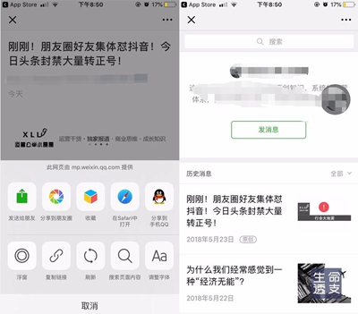 5月23日晚上,小编发现微信又改版了!这次改版后,微信上线了近几年最重要的一个功能——浮窗 使用浮窗功能后,可以边看微信文章边聊天。而过去阅读微信文章,一旦和微信好友聊天,文章就得主动关闭,且丢失阅读记录。 人在深度阅读的过程中,其实不能被打扰,这种干扰阅读的体验令人非常难受。微信这次推出浮窗功能,可以完美解决这两个问题,所以这几乎是无数微信用户期待已久的新功能。 目前iOS版已经公测;而安卓版还处于内测中,主动申请后就可以更新。(但是切忌,如果你在安卓手机上使用过分身功能,一旦更新,那么多个微信号都会变成内测版) 更重要的是,这是继5月8日微信文章前端界面大规模改版后,又一次针对阅读场景的改版,这对公众号运营者来说是个巨大的好消息。 我们深度分析了这次改版,为大家独家解读:这次微信及微信公众号有哪些地方改版了?这次改版预示着什么?对运营公众号有什么影响?对微信用户/粉丝有什么影响? 1、浮窗功能 改版前:阅读文章时,想要和微信好友聊天,文章就得主动关闭,且丢失阅读记录。回头再想阅读,需要找到那篇文章,打开,再找到之前阅读到的段落。这样来来回回耗费了大量时间,更加耗费精力。 改版后: 1、阅读更加便捷 阅读文章时,点击“浮窗”功能,文章会收缩成一个浮窗按钮。然后就可以进入会话界面,和微信好友聊天了。点击右侧的浮窗按钮,文章会再次打开。