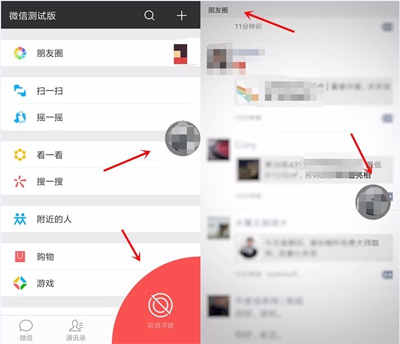 2.多任务处理 使用浮窗后,不仅限于聊天,还可以刷朋友圈,翻相册,几乎可以使用微信所有功能,同时保持文章不被中断。并且,浮窗按钮可以拖动到微信界面上下左右其他地方。拖动到右下角时,可以直接取消浮窗,也就是关闭文章链接,停止阅读。