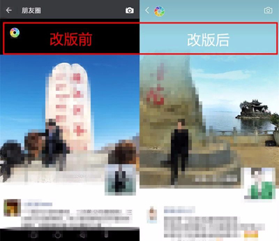 2、沉浸式状态栏 改版前:下拉朋友圈、下拉相册、阅读文章时,会出现大规模的黑色背景。 改版后:下拉朋友圈、下拉相册、阅读文章时,黑色背景变成渐变色背景或白色背景。