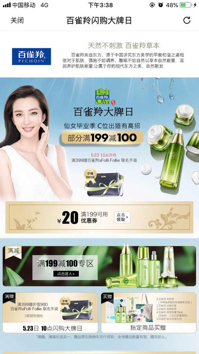 小编经常在腾讯视频上看到各种各样的护肤品广告,这不,刚刚打开的时候,还看到了百雀羚的广告,小编一眼就看到了满199减100,于是立马打开京东商城查看商品信息,真的很优惠,有木有……