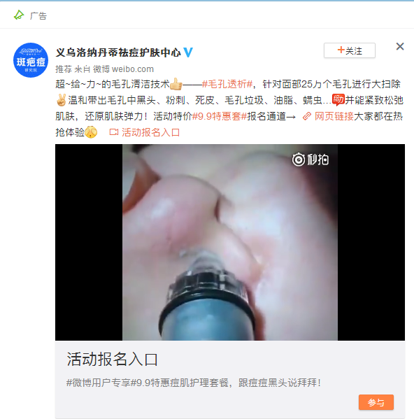 时间:2021-01-23 | 标签: 祛斑祛痘 微博推广 | 作者:Q8 | 来源:上海网络