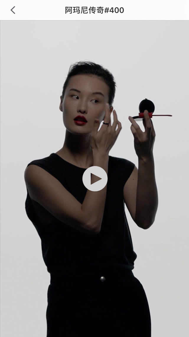 如果各大女性品牌的广告主想要给自己的产品做网络营销,可以考虑美图平台哦! 二、落地页动图闪现创意丰富 我们通常以短视频或者图文结合的方式来阐述产品功能,一开始看到阿玛尼这支广告小编也以为阿玛尼会用短视频的方式呈现,但是点击播放后却是图片快闪的方式,没有过多的文字展现和语音详解,不仅突出了产品的使用效果,同时明星代言更加突出产品气质。