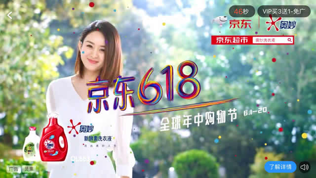 说起618大家都不陌生了,各大B2C平台每年都会利用618进行年终大促销,很巧的是,今年618赶上了端午节,因此奥妙也抓住了这次年中的营销机会,在优酷上做起了网络推广,下面我们一起来看下奥妙这次广告投放有什么特色? 一、优质的广告位 奥妙这次广告选择了优酷视频的播放页广告,此广告位不仅曝光率大,而且呈现的内容丰富,可以展现产品功能以及活动信息。 例如:广告中所展示出:全球年中购物节;奥妙购买地址:在京东超市直接搜索奥妙洗衣液。