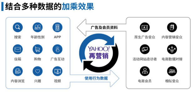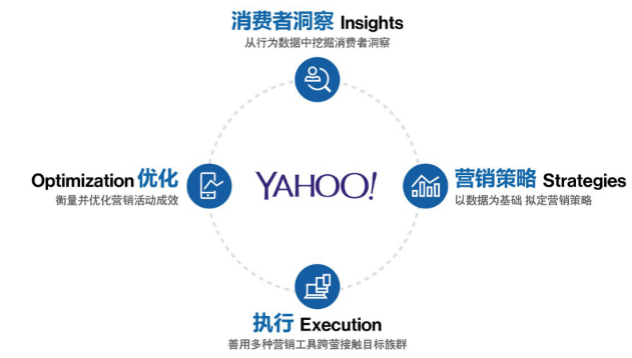 为什么要找Yahoo合作 1、海量数据灵活运用 依托真实有效的用户数据,Yahoo主要从优化策略、消费者洞察、行销策略、执行工具四个方面将广告主的推广效果落地。Yahoo的用户是真实有效的用户,这是通过Yahoo真实的消费所得出来的数据。从搜索行为、邮箱、年龄性别、资讯、购物、兴趣,到影音视频、广告互动……这些海量的资料可以帮助广告主定位所需的受众,并形成一个庞大的数据库,包含曾经浏览过你网页的人、曾经和电商资料咨询的人、甚至可从信箱收件箱的信息看到真实的购买行为……这些资料可以帮你不断地汇集人群,随着特定受众人群数量的不断累积,广告主的ROI也会不断地上升。