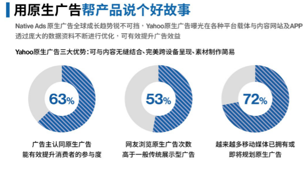 认识Yahoo信息流广告 以广告为核心业务的Yahoo主推信息流广告。信息流广告又称原生广告,信息流广告是出现在新闻门户或者社交媒体中的广告,信息流广告的投放特点是个性化投放,可以通过标签去投放,按照自己的需求,依托海量的用户数据和信息流生态体系,精准捕捉用户意图,有效降低用户干扰,将广告展现给目标客户。