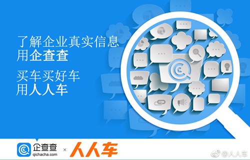 “了解企业真实信息,用企查查;买车买好车,用人人车。”——企查查&人人车