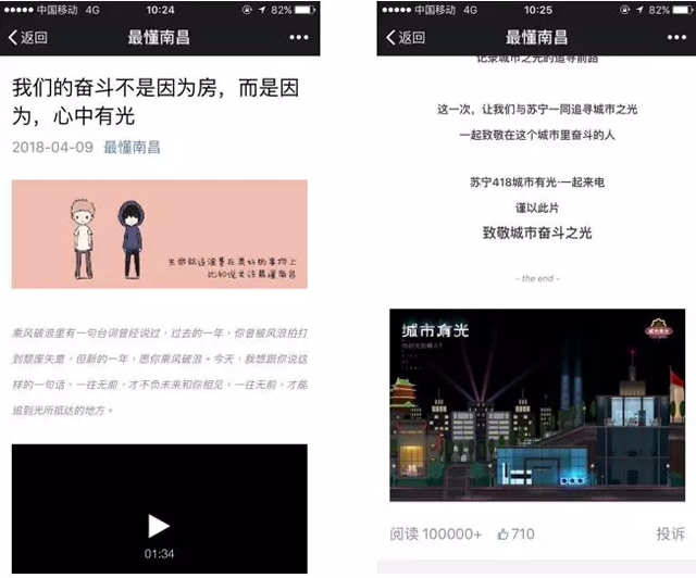 视频文章首推,《我们的奋斗不是因为房,而是因为,心中有光》受到广大网友的关注,朋友圈转发量以及传播自发性覆盖面广,影响力较大。